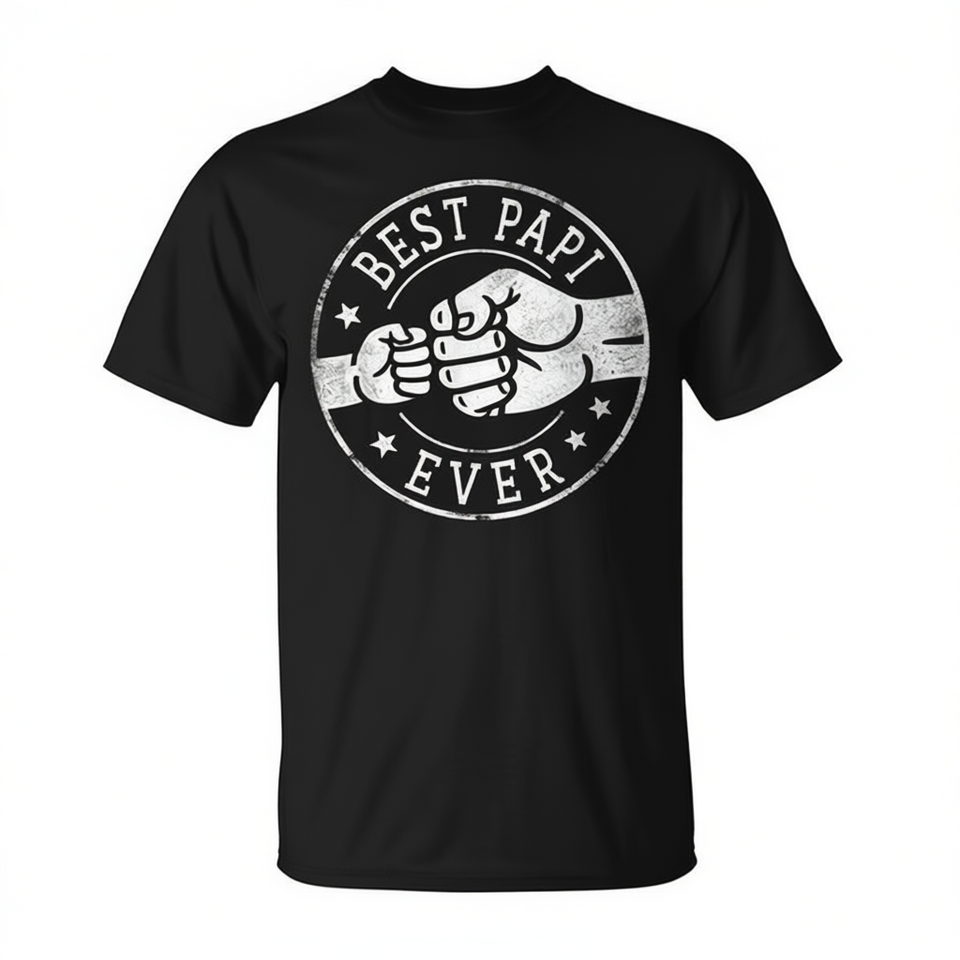 T-shirt unisexe pour adulte à manches courtes et col rond, imprimé sérigraphié avec l'emblème cercle « Best Papi Ever Fist Bump », idéal pour les réunions de famille et les fêtes