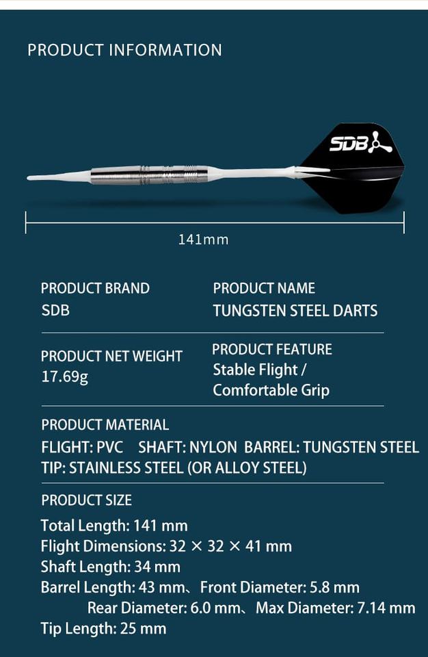 Taille de la fléchette:141mm
