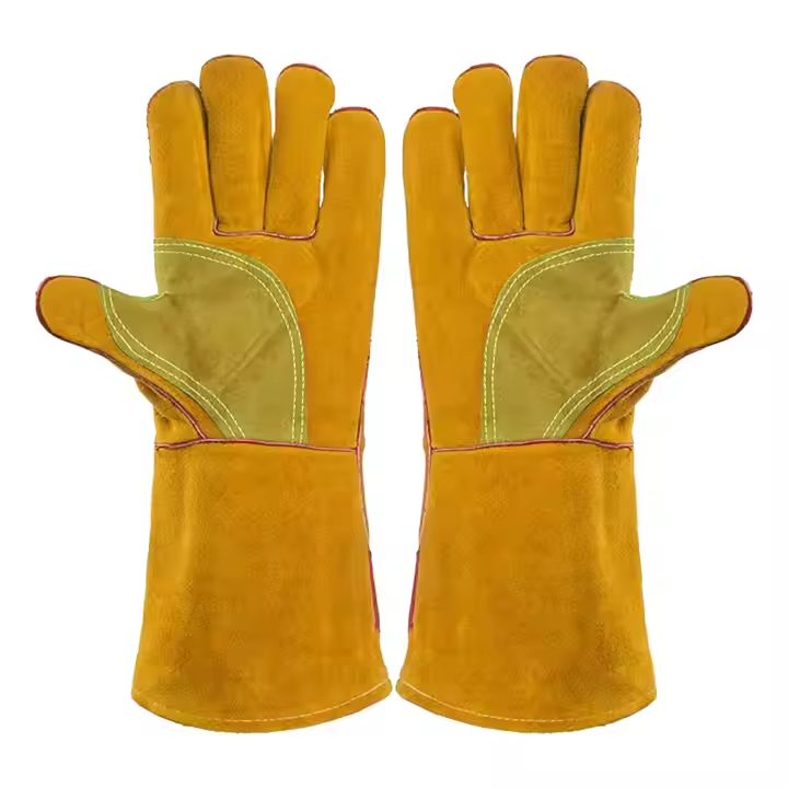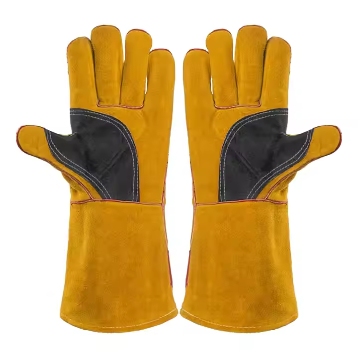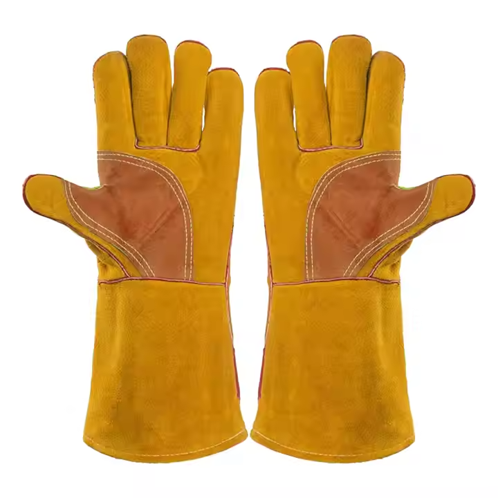 Gants en cuir de vachette robuste de meilleure performance résistant à l'abrasion et à la chaleur pour le soudage des travaux de sécurité dans la construction du barbecue