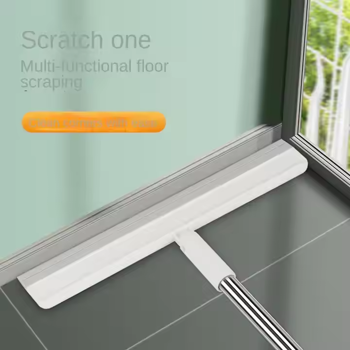 Meilleur grattoir de sol portable pour la maison, balai de prêteur, grattoir en caoutchouc souple, essuie-glace pour la toilette et l'eau avec manche à balai en acier