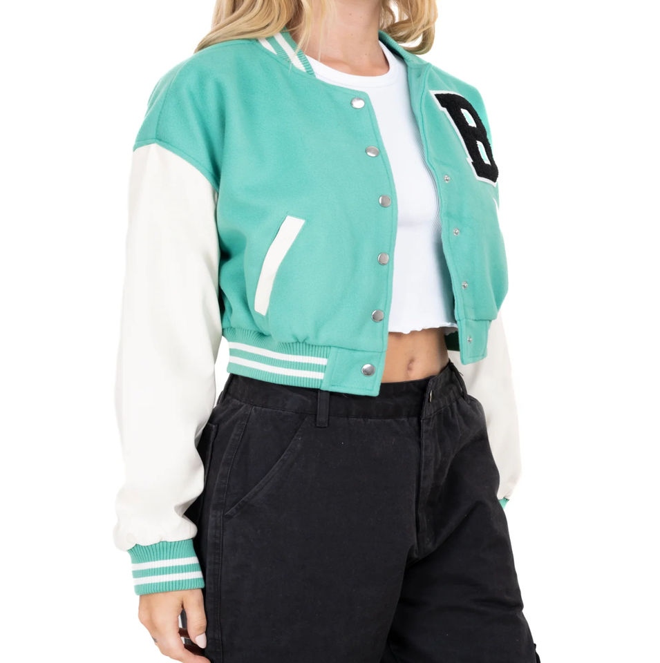 Meilleur tissu de laine de qualité supérieure Style Letterman veste universitaire pour femmes longue et mince col montant coupe-vent hiver devant prix de gros