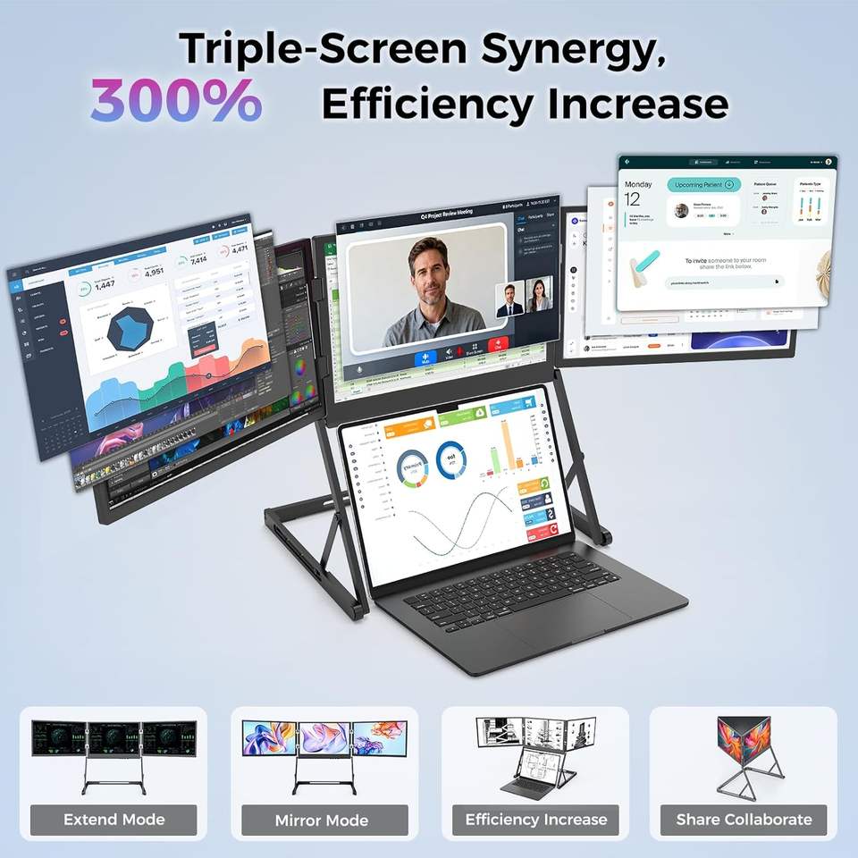 Moniteur portable triple pour ordinateur portable 14 pouces FHD IPS, extension d'écran d'ordinateur portable, interface USB, panneau TFT, configuration à un seul câble