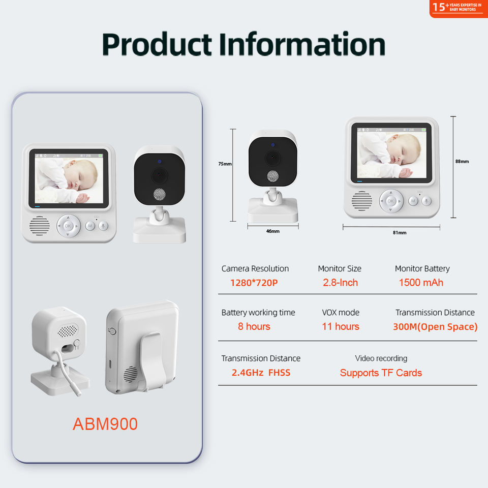 Meilleur prix : Moniteur bébé vidéo et audio 720P, écran 2,8 pouces, vision nocturne, interphone audio bidirectionnel, 8 berceuses, batterie 1500 mAh, température