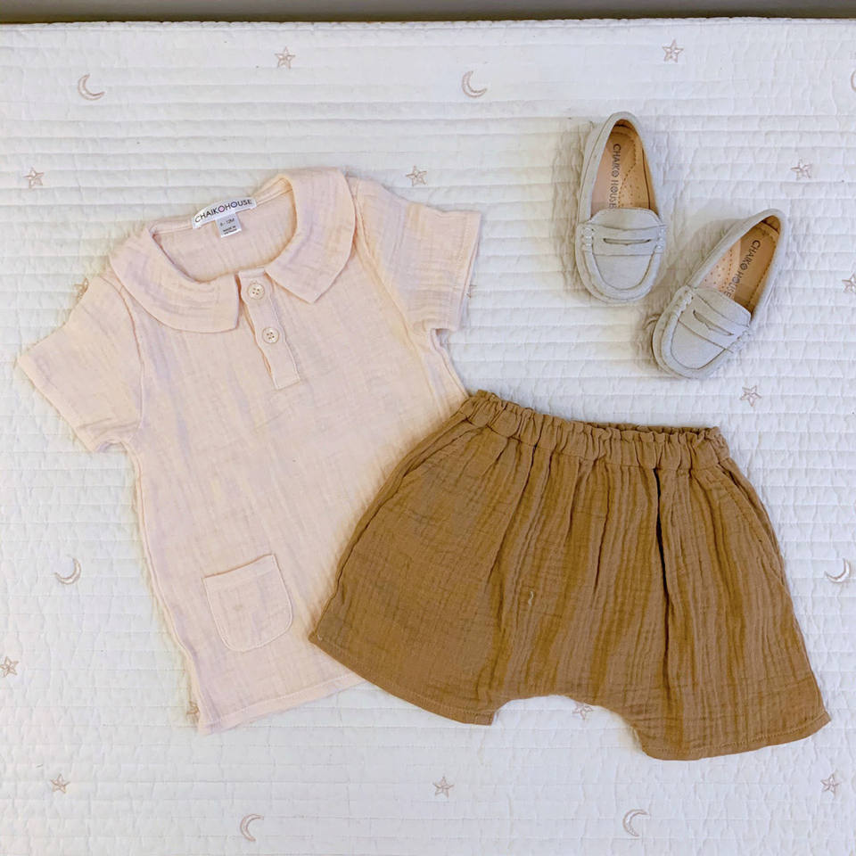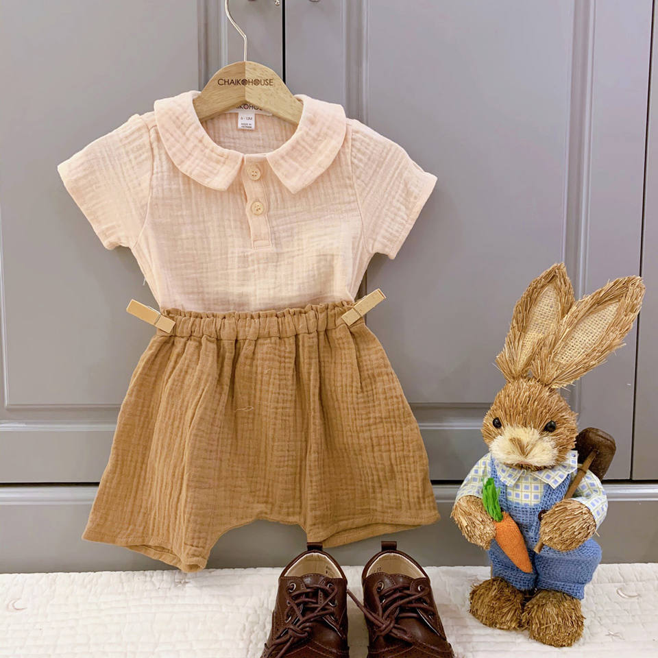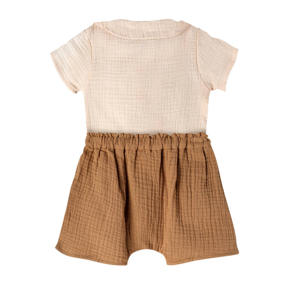 Ensemble 2 pièces d'été et d'automne au meilleur prix pour bébé, chemise beige à manches courtes, pantalon court marron-Ensemble Zane