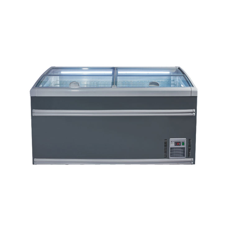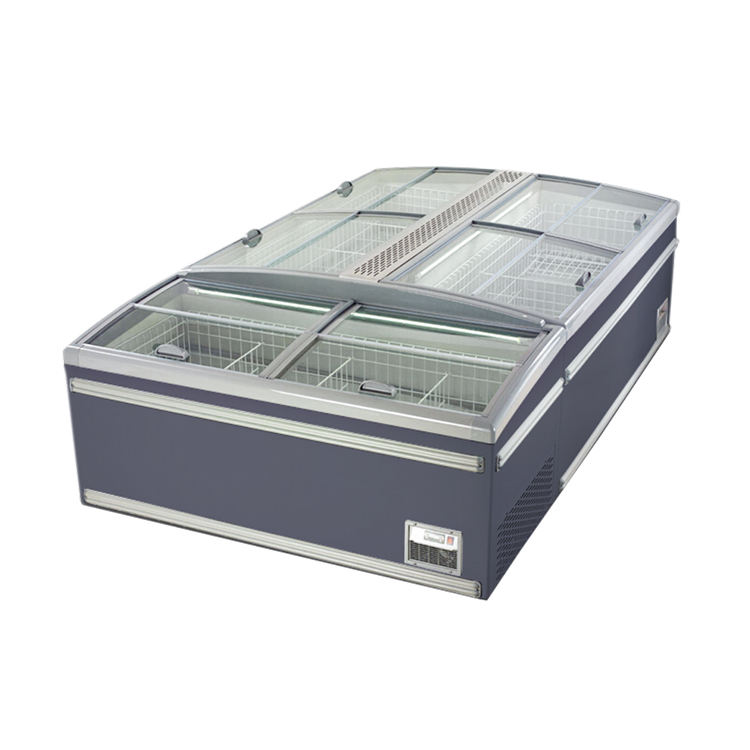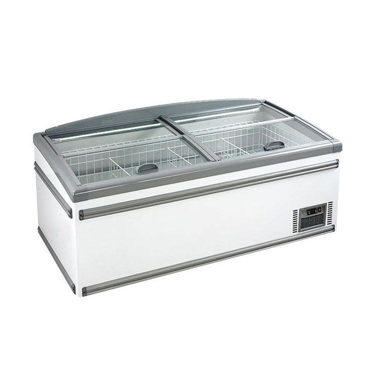 Meilleur prix Congélateur coffre congélateur îlot de présentation coulissant en verre de supermarché profond pour viande congelée Pizza glacée crème glacée