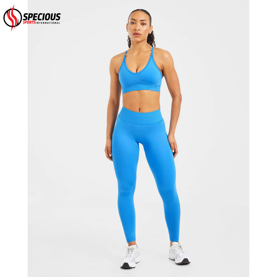 Meilleur prix Leggings de yoga professionnels pour femmes à taille haute, personnalisés, bleu clair uni, séchage rapide, respirant, extensible dans les quatre sens, V