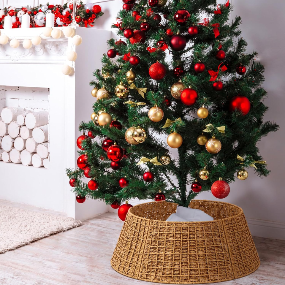Meilleur prix ferme tissé papier corde noël rond arbre collier arbre de noël jupe pour artificiel du vietnam B2B