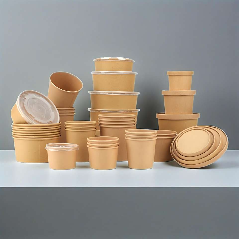 Bol à soupe en papier kraft jetable de qualité alimentaire, personnalisable, au meilleur prix, avec couvercle en PP et couvercle en papier