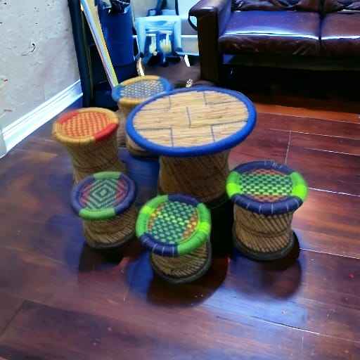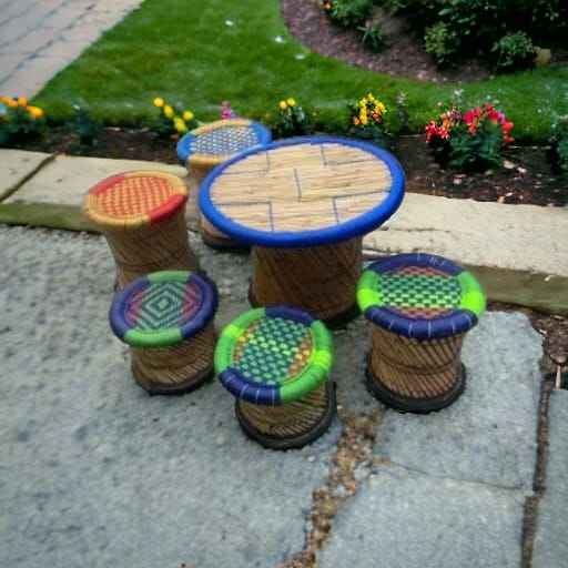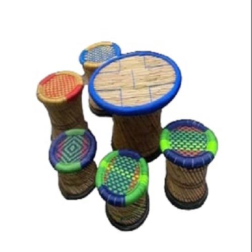 Meilleur prix fait à la main écologique forme ronde 4 pouf tabouret avec Table bambou canne pouf pour salon café Restaurant