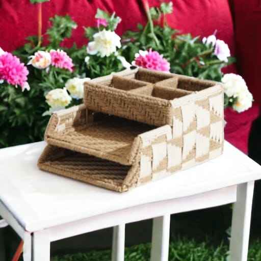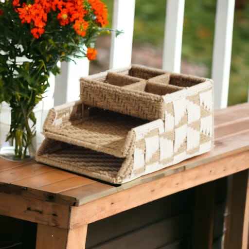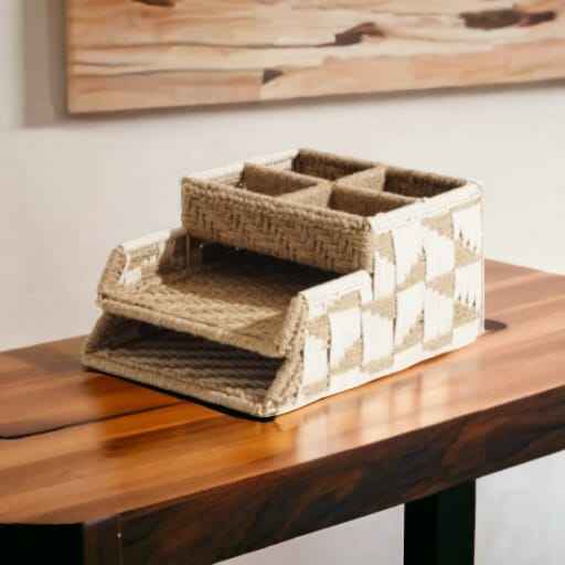 Panier de rangement pour organisateur de bureau en jute