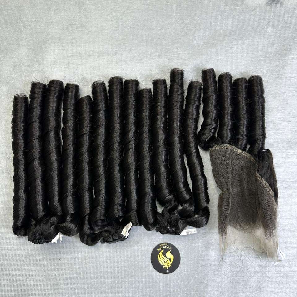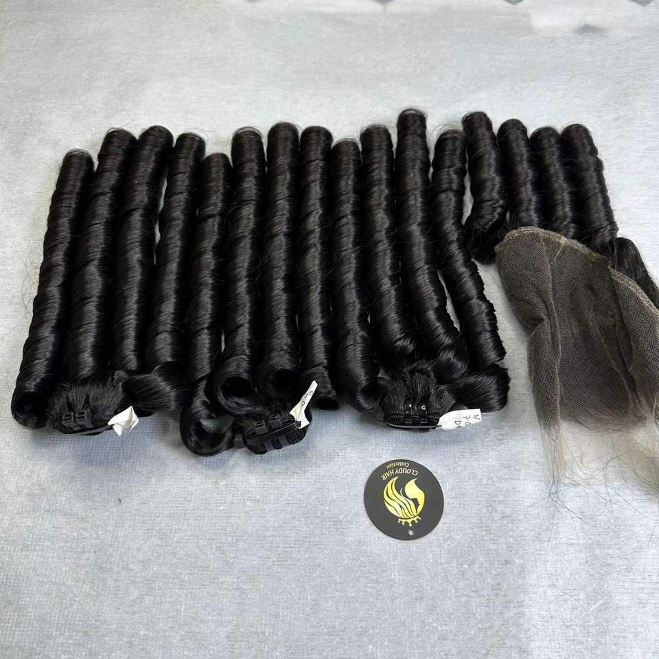 Meilleur Prix Haute Qualité Tendance Cheveux Humains Vierges Vietnamiens Bouclés Effet Rebond Tissage Double Drawn Couleur Noire 100g
