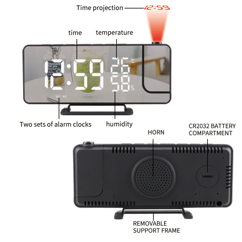 Feature:12/24 Hours Display+Snooze+alarm+mirror