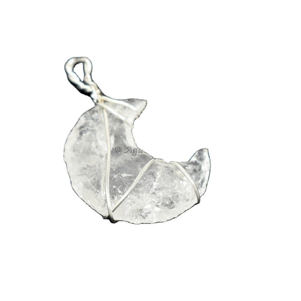 Pendentif artisanal en cristal naturel indien, pierre précieuse de guérison, cristal, Quartz, lune, fil d'or, meilleur prix