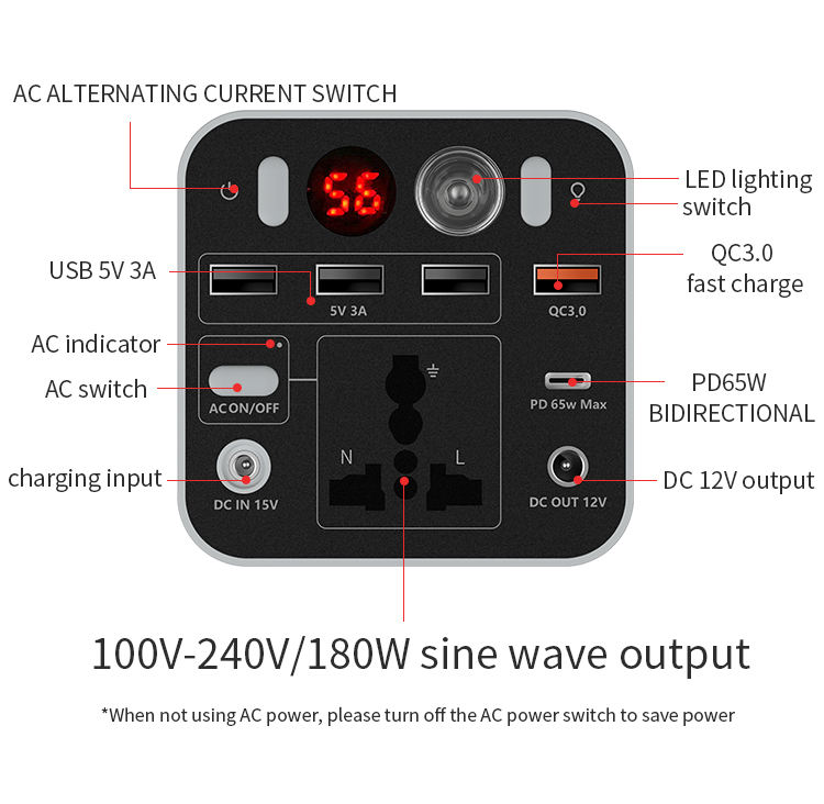 Sortie AC:180W (crête 200W)