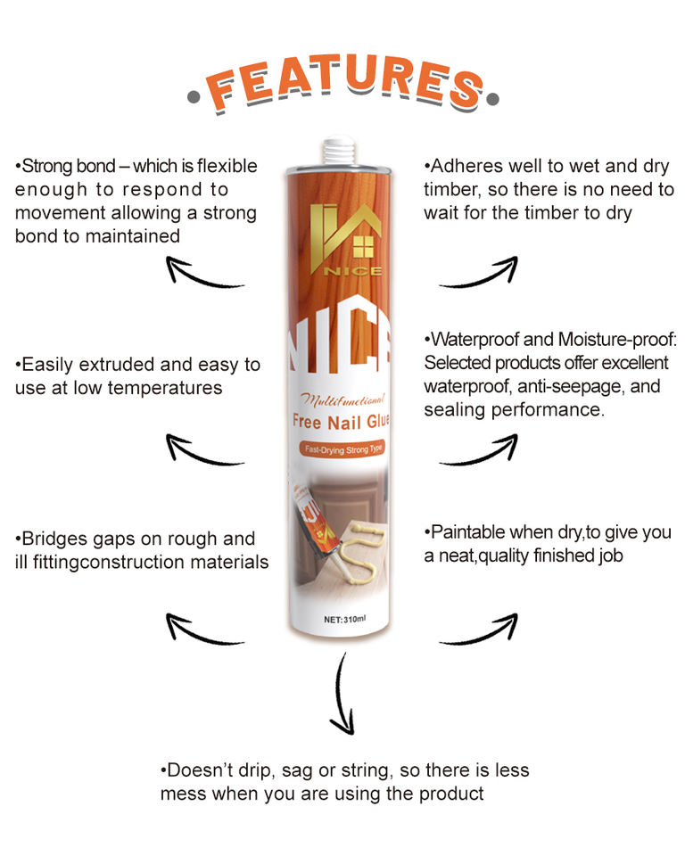 Meilleur prix Colle sans clou Liquide Nails Adhésif de construction Caoutchouc SBS Pâte lisse Collage de panneaux muraux Pas besoin de clous