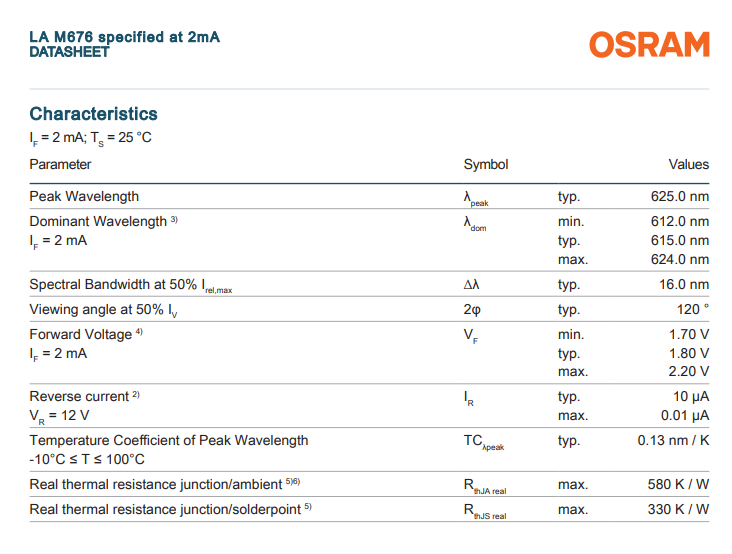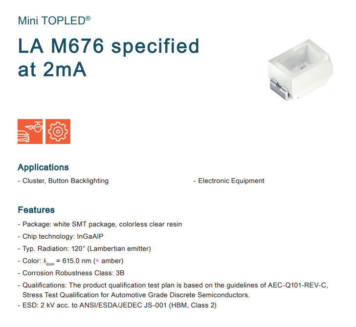 Product name:Mini TOPLED LA M676 specified at 2mA