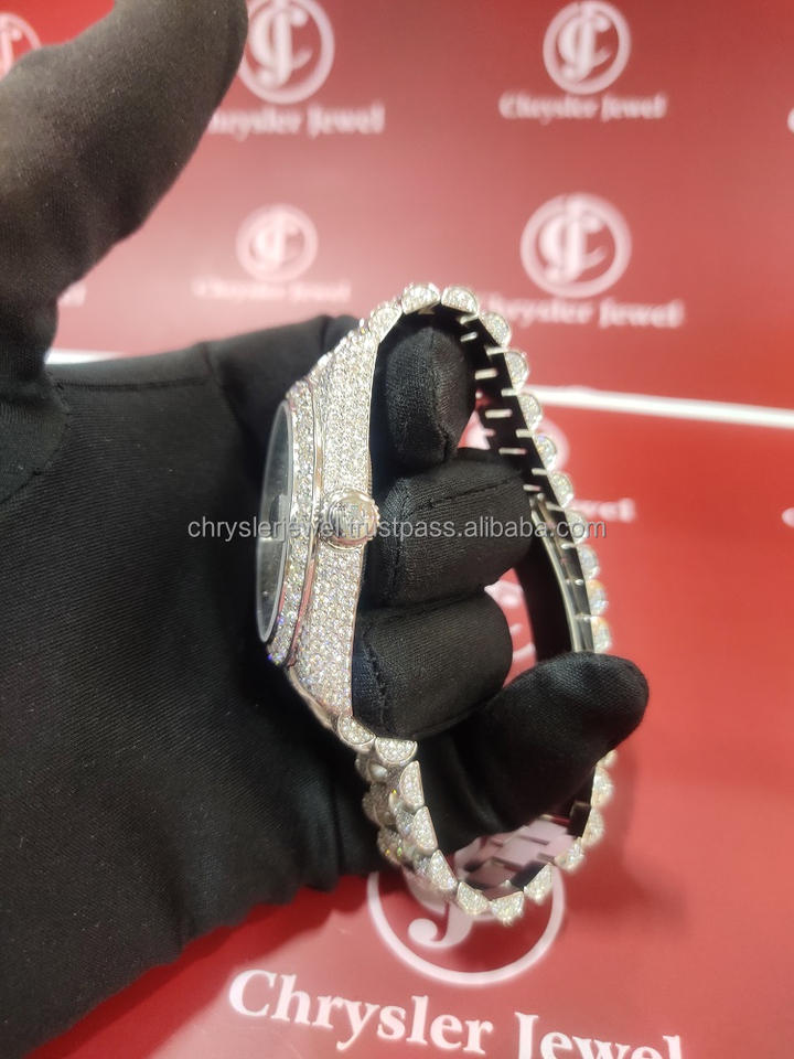 Montre automatique mécanique ETA de qualité supérieure, faite à la main, avec diamants Moissanite DEF VVS, style Hip Hop, en acier inoxydable, analogique