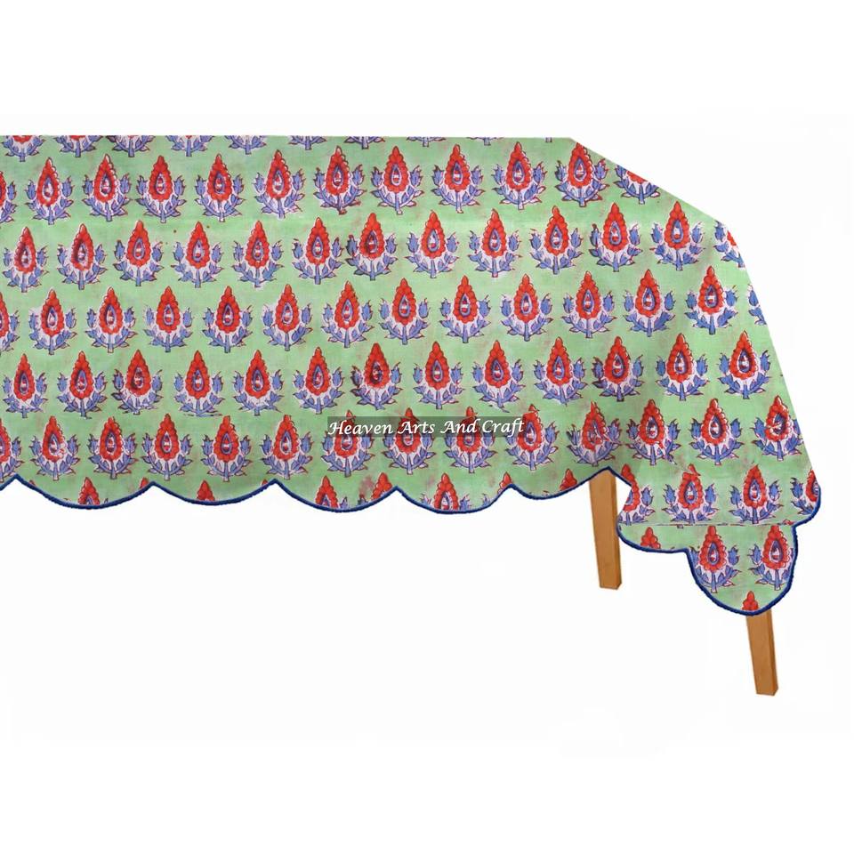 Nappe rectangulaire festonnée en coton imprimée à la main, design exclusif, en pur coton, au meilleur prix