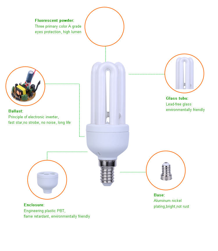 Nom du produit:Ampoule Mini E14 en Forme de U 3u 9w T3 Cfl Économique et Écologique au Meilleur Prix