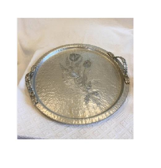 Plateau de service en métal de designer traditionnel fait à la main au meilleur prix avec design de fleurs à poignée lourde