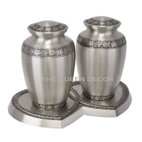 Meilleur prix couleur argent adulte compagnon urnes de crémation moderne en laiton coeur plateau fournitures funéraires pour les cendres pour les Couples