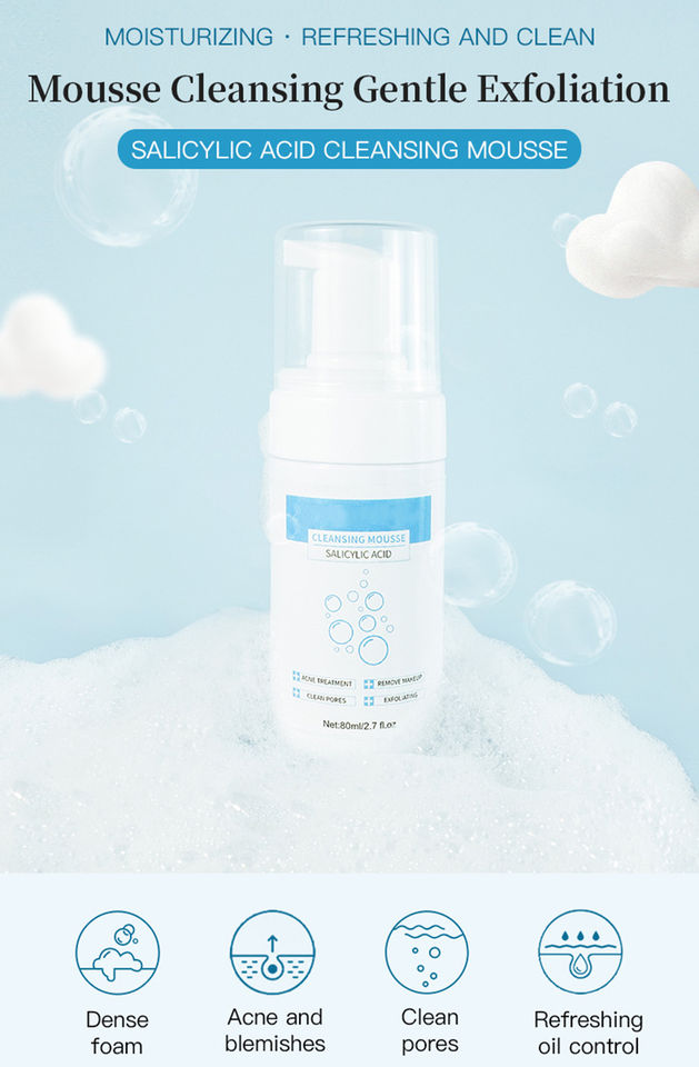 Meilleur Prix, Faible MOQ, Personnalisez Votre Logo, Nettoyant Visage Moussant Végétalien Bio aux Acides Aminés et Acide Salicylique, Formule Végétale, Pour Tous Types de Peaux