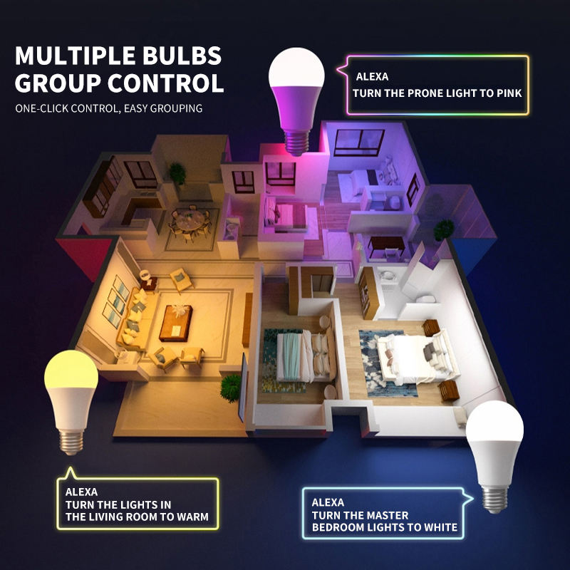 Ampoule LED intelligente au meilleur prix, haute qualité, Wifi, application Alexa, télécommande sans fil Tuya, RGB, E26/E27, interrupteur à capteur, alimentation AC