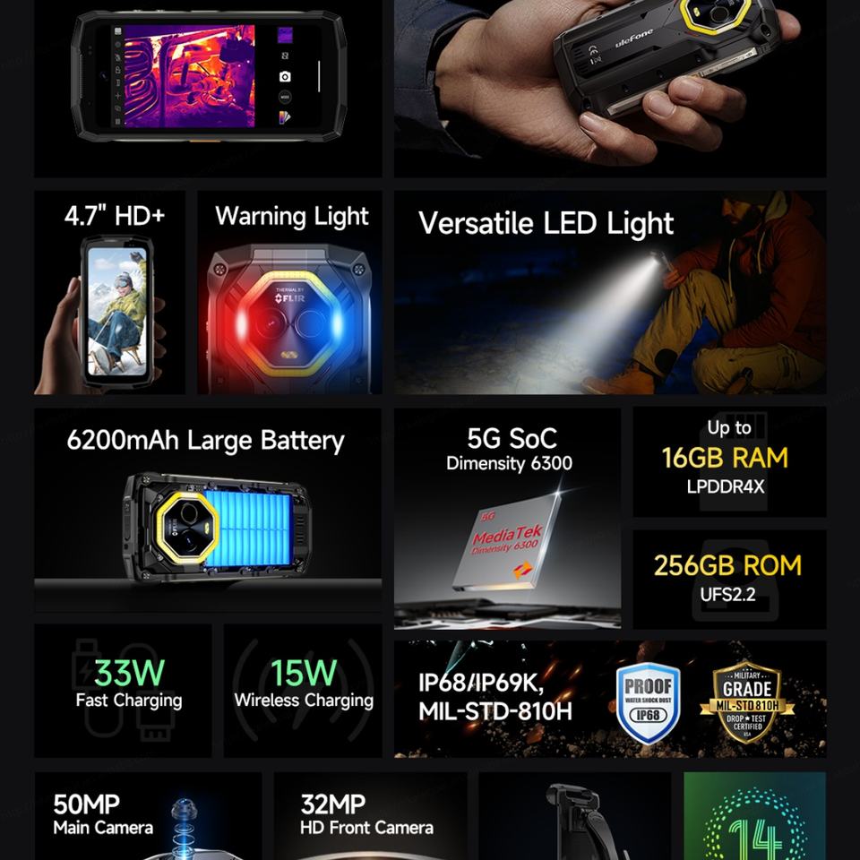 Meilleur prix Ulefone Armor Mini 20T Pro Téléphone robuste avec imagerie thermique 8 Go + 256 Go IP68/IP69K 4,7 pouces 6200 mAh Android Antichoc CDMA