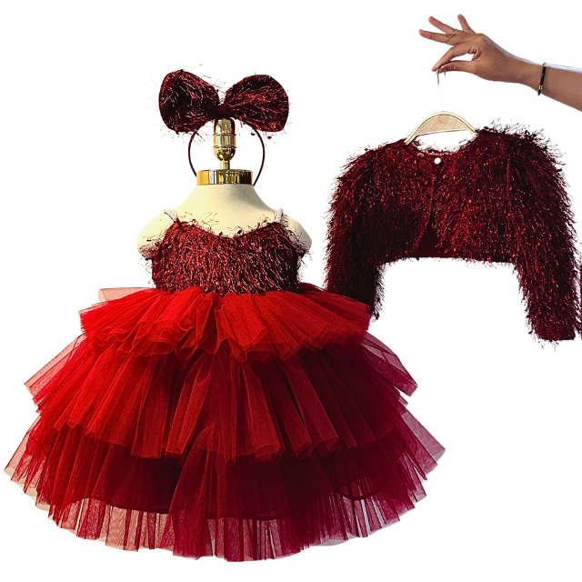 Robe princesse d'hiver avec manteau à plumes pour fillettes, satin et tulle, tailles 1–6, 100 pièces, fabriquée au Vietnam