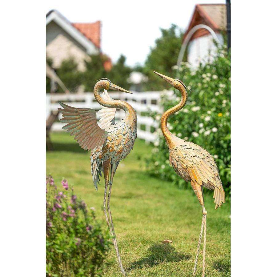 Oxidized Crane Sculpture Garden Sets Christmas Holiday Outdoor Home Decoration Birds Figurine Metal Custom Crane Statue Supplies