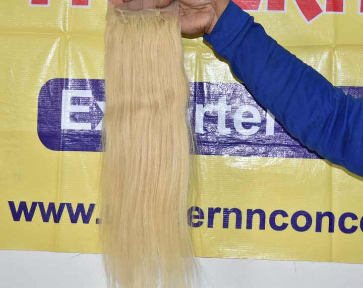 Meilleure Qualité 100% Raw Vierge Blonde Droite Indienne Temple Extensions de Cheveux Humains 4*4 Cuticule Aligné Fermeture Naturel