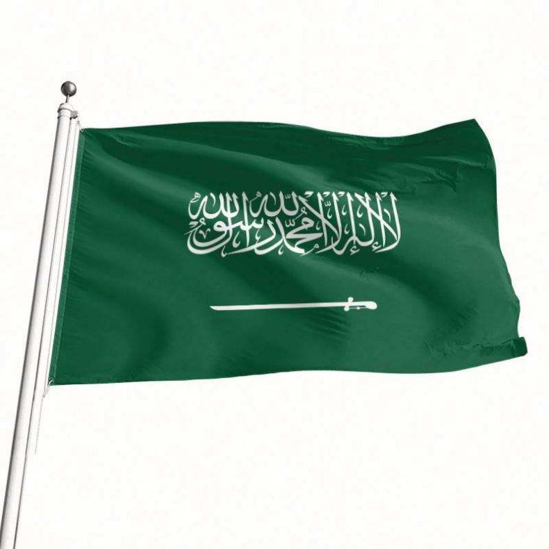 Drapeaux personnalisés en polyester 100D de qualité supérieure, drapeaux d'Arabie Saoudite, vente en gros d'usine pour usage intérieur et extérieur, excellent prix