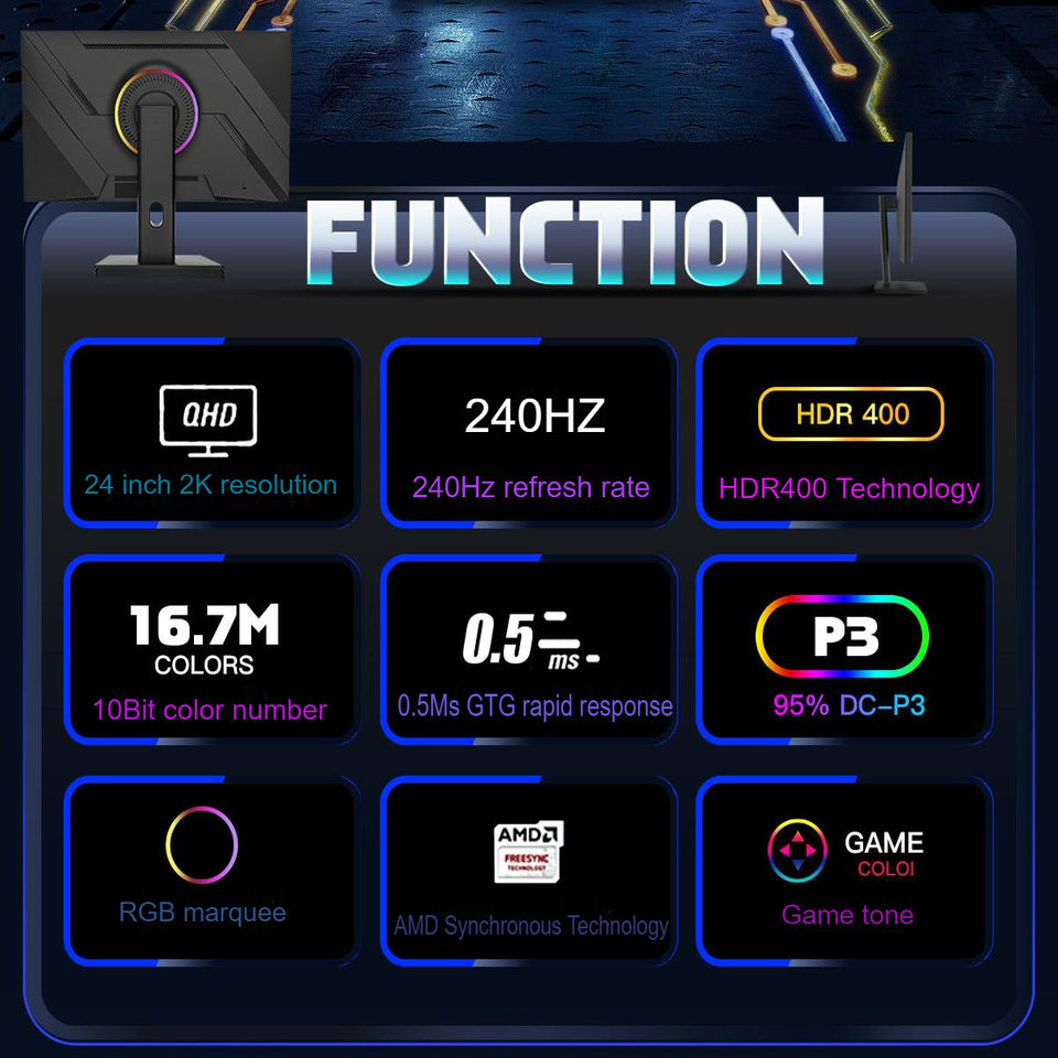 Meilleure qualité 24 pouces 24.5 pouces écran 16:9 2560*1440 2K moniteur de jeu 240Hz moniteur PC