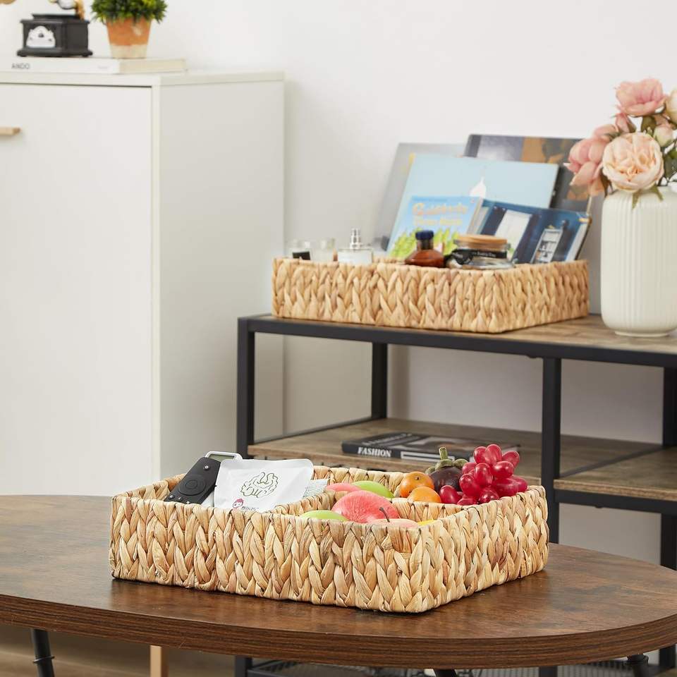 Meilleure qualité 3 sections rectangulaire tissé panier de rangement tissé à la main jacinthe d'eau en osier divisé organisateur PC matériel