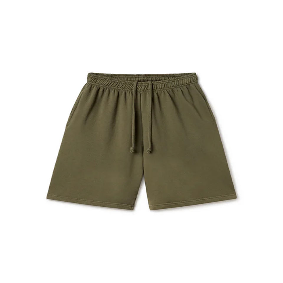 Meilleure qualité 350 GSM solide vert olive 100% coton respirant écologique décontracté taille moyenne fermeture à cordon pantalon court côté
