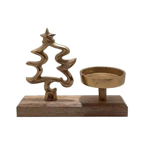 Bougie de sapin de Noël en aluminium de la meilleure qualité avec base en bois et bougeoirs fantaisie