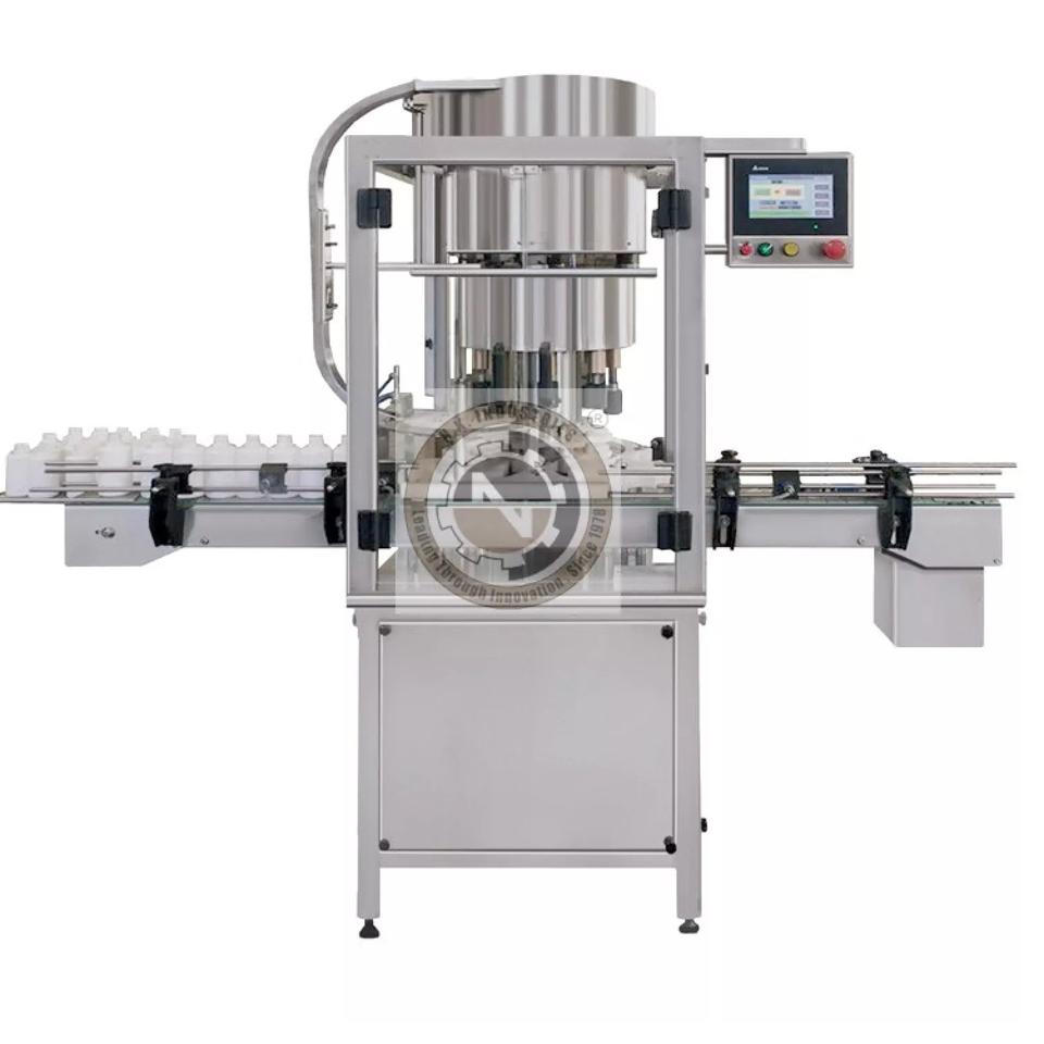 Système de remplissage automatique monobloc de liquides, d'insertion de bouchons et de capsulage de qualité supérieure pour lignes d'emballage de haute précision