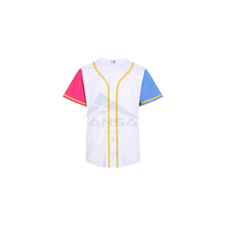 Fabricant de maillots de baseball personnalisés de haute qualité, imprimés en couleur, grande taille, à boutons, 100% polyester respirant