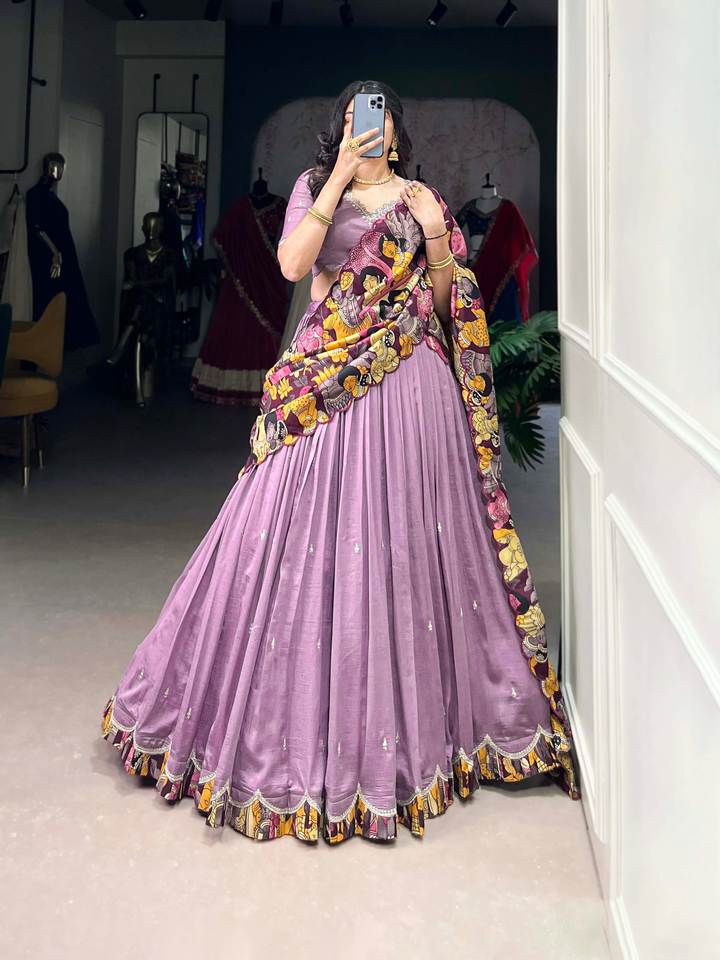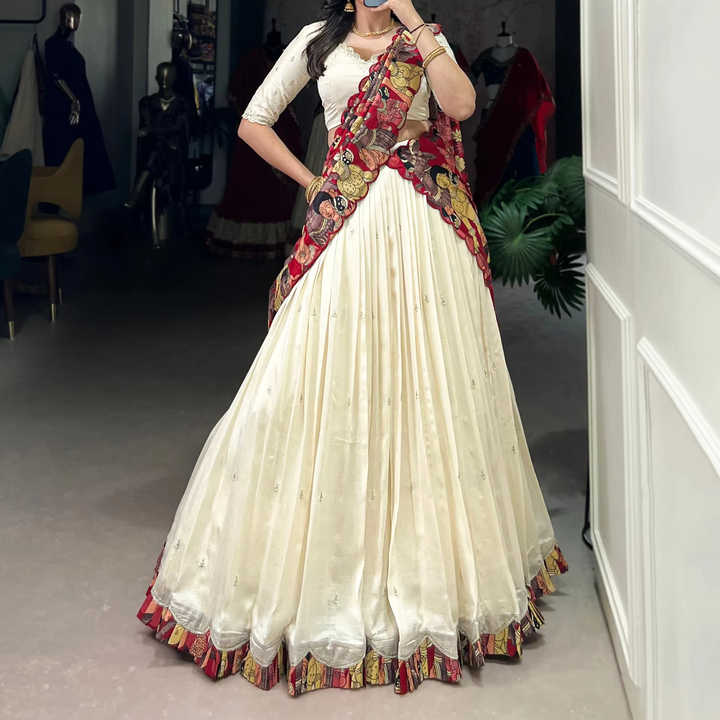 Printing Methods:Sequins and Thread Embroidery Work With Kalamkari Print Border