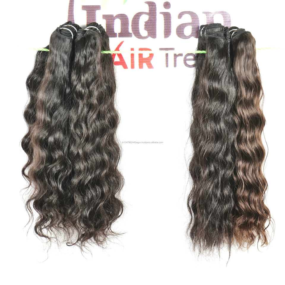 Extensions de cheveux humains indiens de qualité supérieure, couleur noire, cuticules alignées, ondulées, brutes, vente en gros, vierges, double trame, naturelles