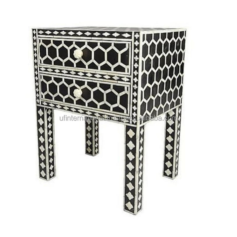 Tabouret de Table latérale en os noir, incrustation d'os de meilleure qualité, Table latérale de style indien, pour le salon, 2 pièces
