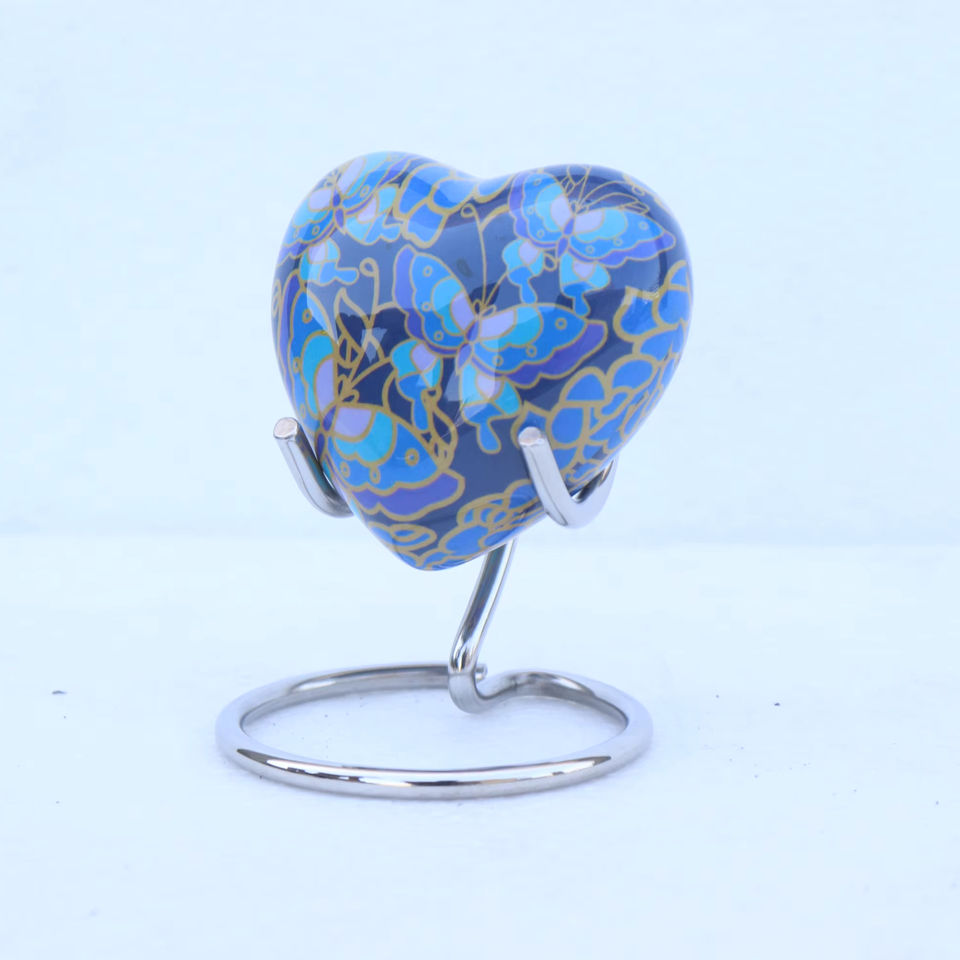 Meilleur urne funéraire commémorative en laiton bleu en forme de coeur pour bébé fournisseur de fabrication de funérailles de l'Inde
