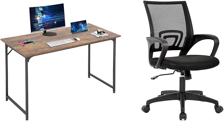 Fauteuil de Bureau Rotatif Confortable de Meilleure Qualité avec Hauteur Réglable, Roulettes, Support Lombaire en Grille et Bureau Pivotant