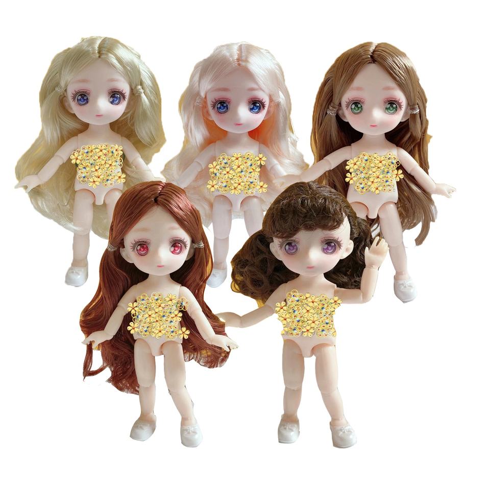 Meilleure qualité comique visage 3d yeux 16cm poupée fille mobile articulé plusieurs couleurs coiffures femme nue corps fille jouets Muneca