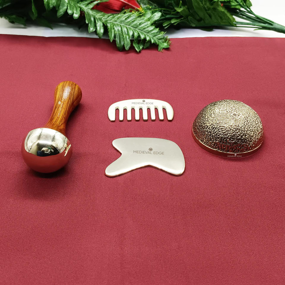 Ensemble complet de baguettes Kansa et Gua Sha de meilleure qualité pour améliorer le teint, réduire les rides et la relaxation Original Indian Factory