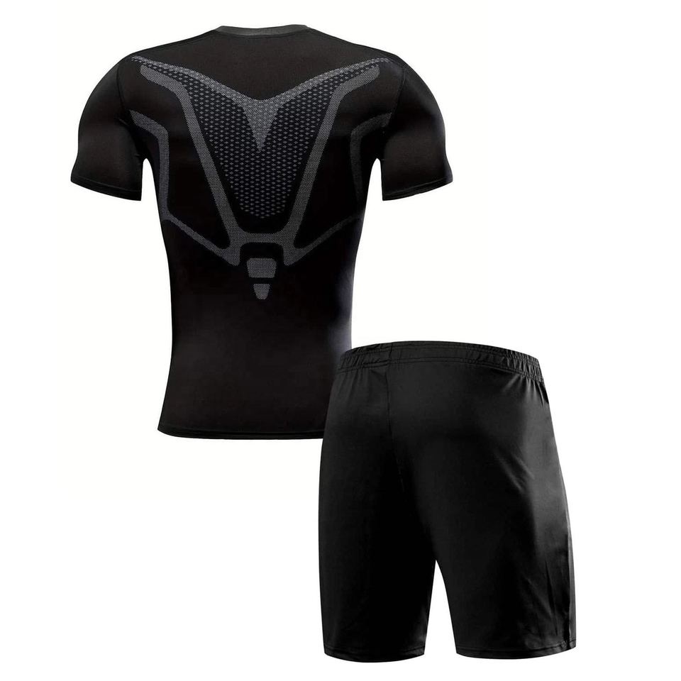 Ensemble de t-shirt et short de compression en maille respirante décontractée de qualité supérieure pour l'été, 2 pièces, pour hommes, pour la salle de sport et le fitness