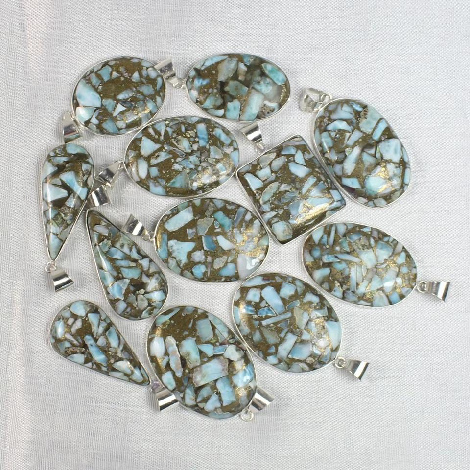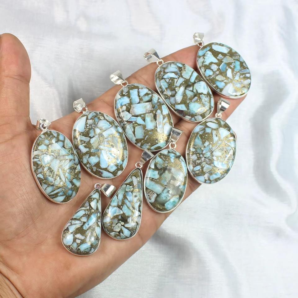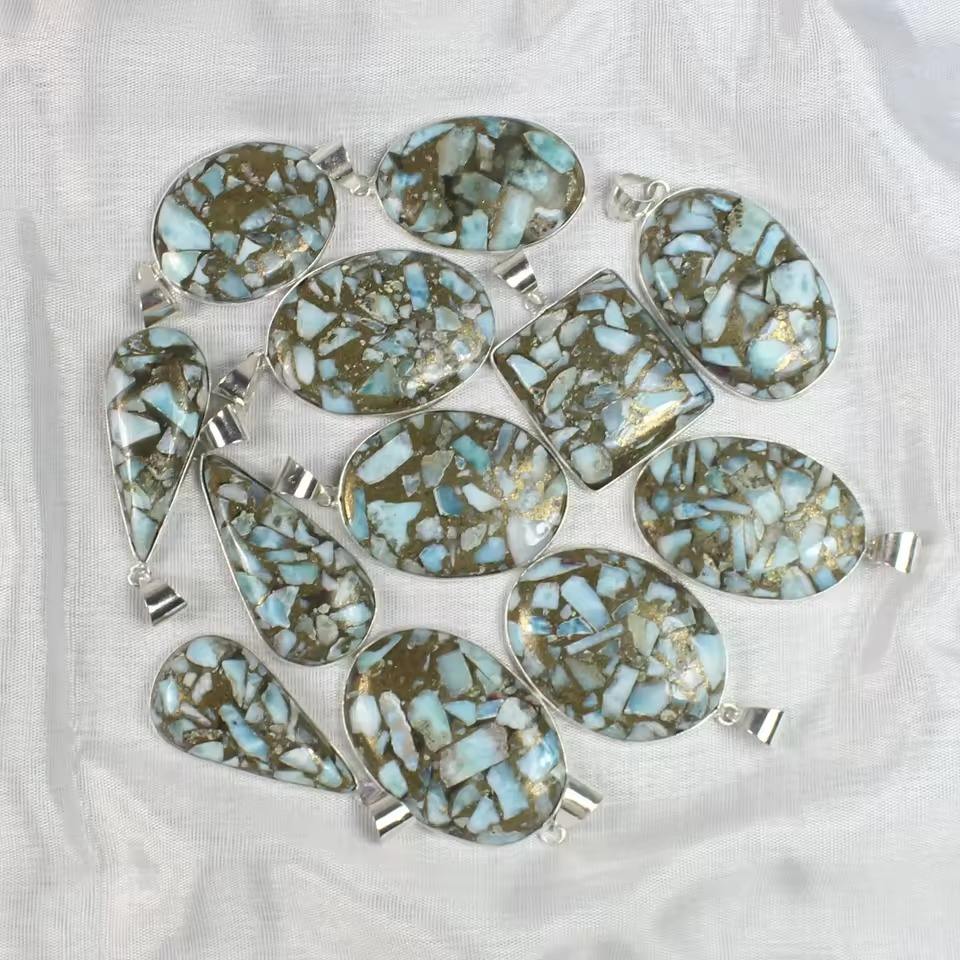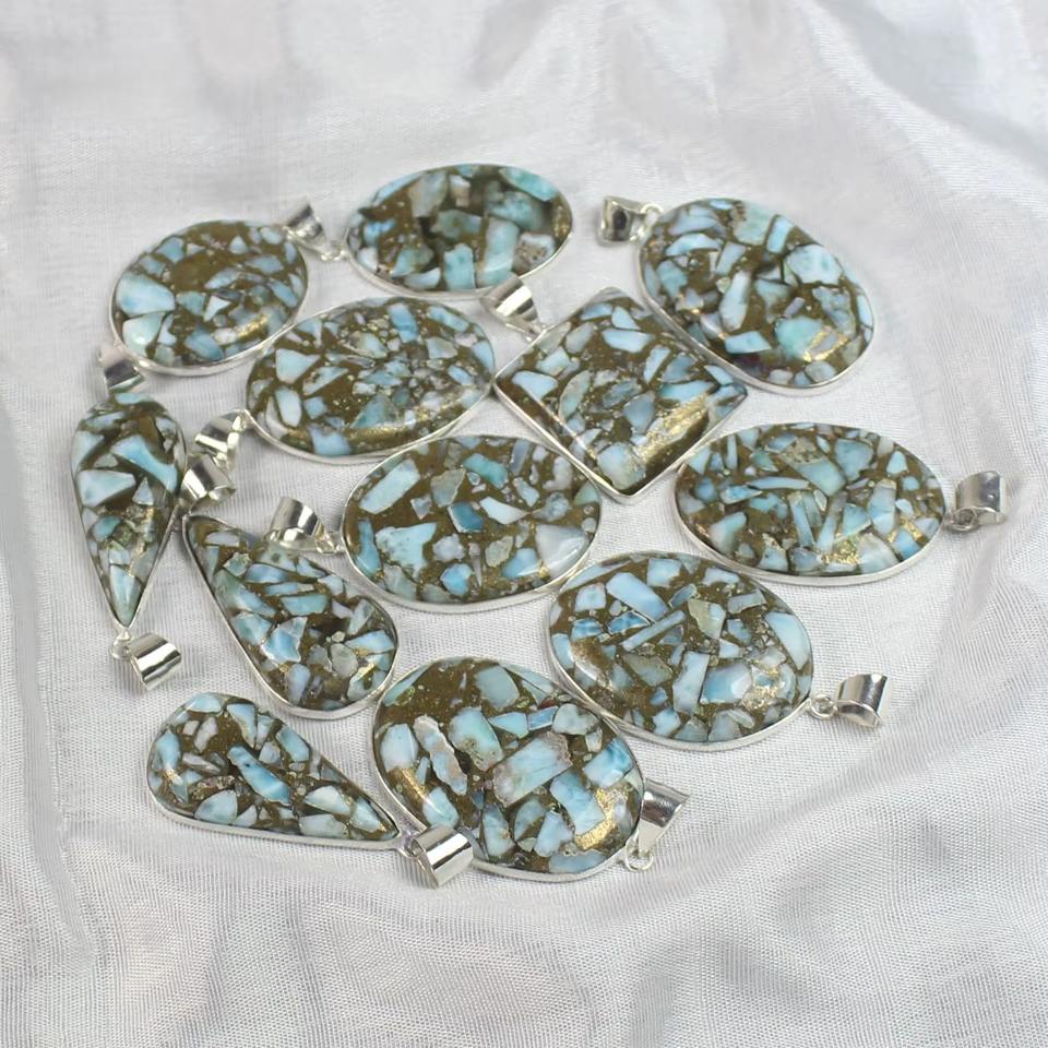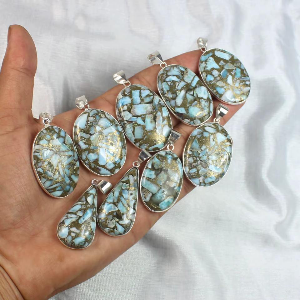 Pendentifs en cuivre larimar plaqué argent