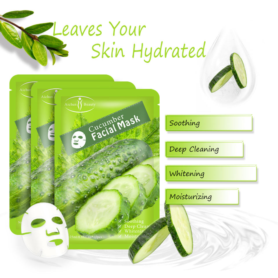 Masque facial au concombre de qualité supérieure, anti-acné et hydratant, masque facial en feuille