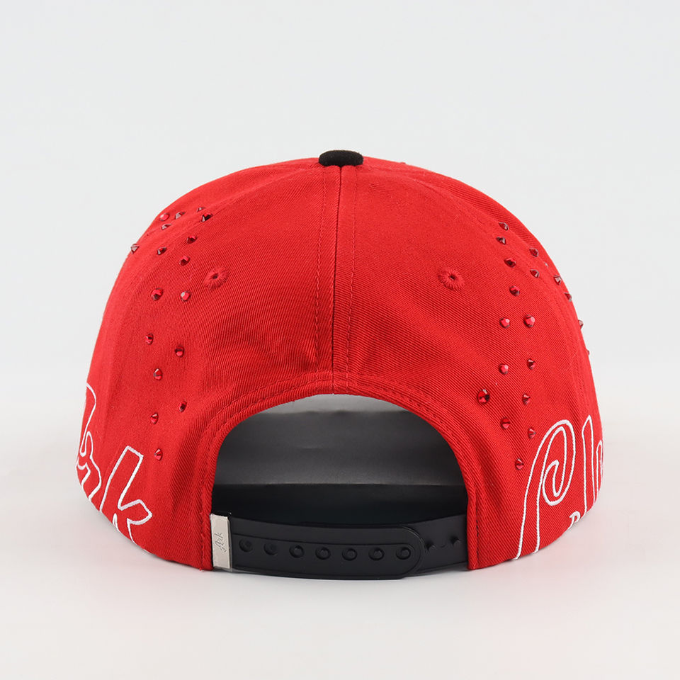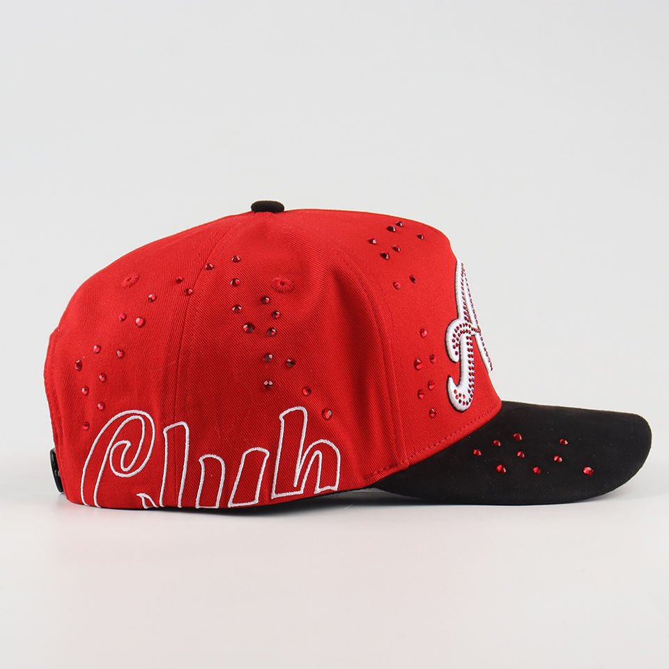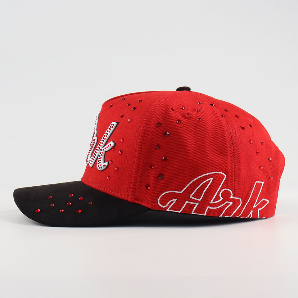 Casquette de baseball personnalisée de qualité supérieure à 5 panneaux, visière semi-courbée, 100% coton sergé, broderie 3D avec strass, chapeau de mode en gros
