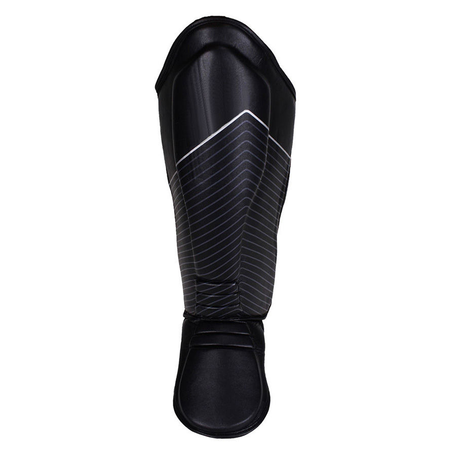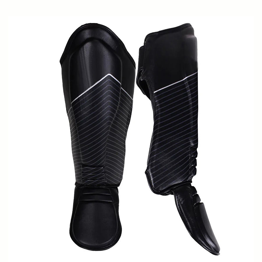 Protège-tibias de sport élastiques personnalisés de qualité supérieure en cuir PU avec cadre métallique, protection professionnelle pour le kick-boxing et le football, impression de logo sur mesure